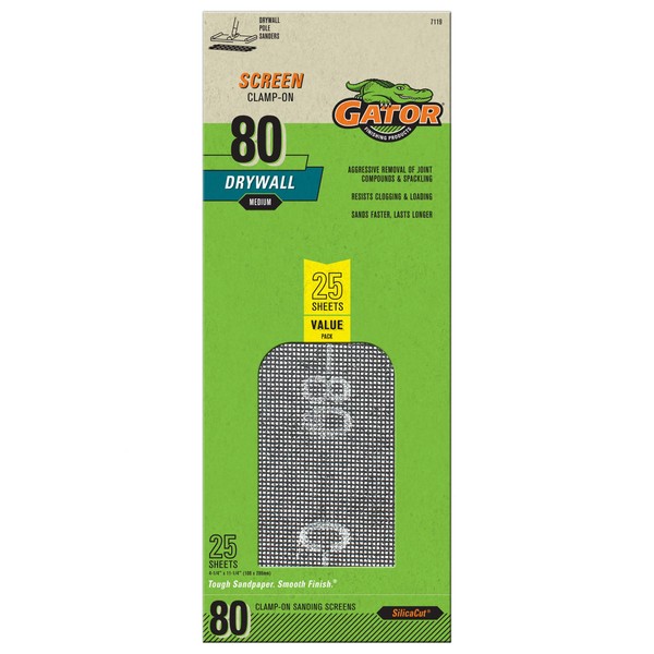 Gator 7119 Medium 80-Grit Drywall Sheet Sandpaper, 4.25 x 11.25 Inch, 25 Sheets