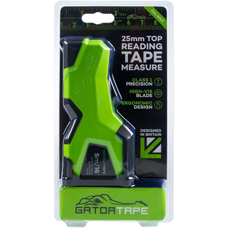 GATORTAPE Class 1 Precision 5m Top Reading Tape Measure 25mm Blade | Easy & Accurate Internal Measurements (Metric & Imperial)