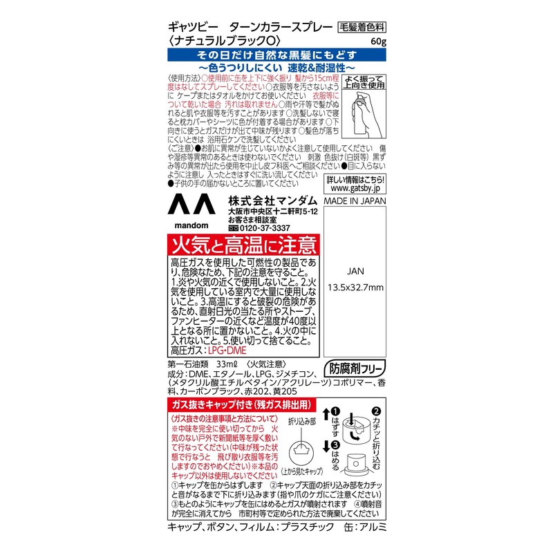 GATSBY (ギャツビー) ターンカラースプレー ナチュラルブラック 60g