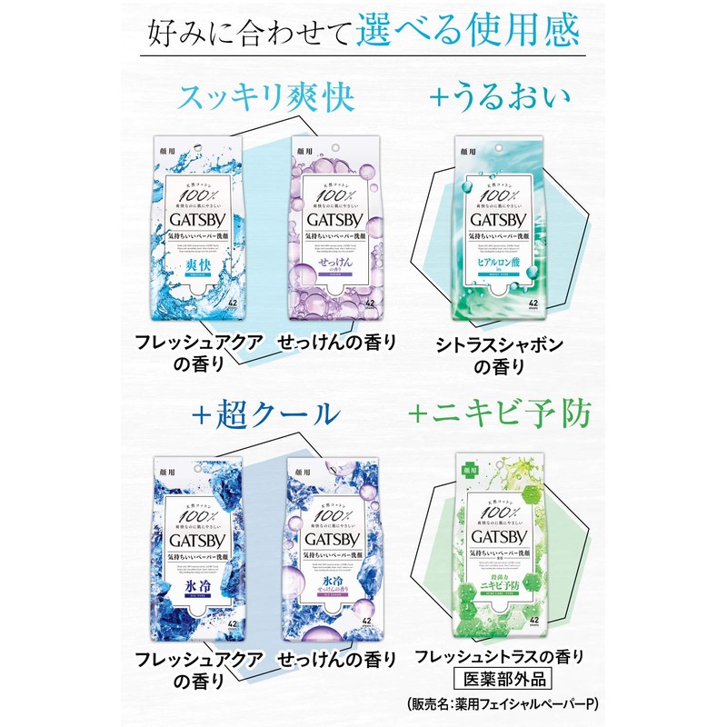 GATSBY Facial Paper, Ice Type, Refreshing Facial Sheet, Men's, Soap Scent, Set of 42 Sheets x 3 Packs
