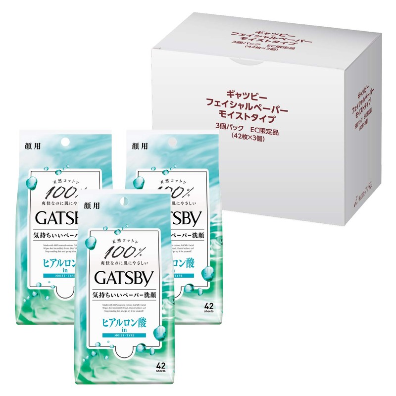 GATSBY Facial Paper, Moist Type, Men's, Facial Cleansing Sheet, Citrus Soap Scent, Set of 42 Sheets (x3)