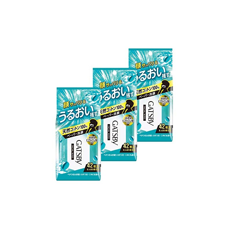 GATSBY Facial Paper, Moist Type, Men's, Facial Cleansing Sheet Set, Value 42 Sheets x 3 Pieces
