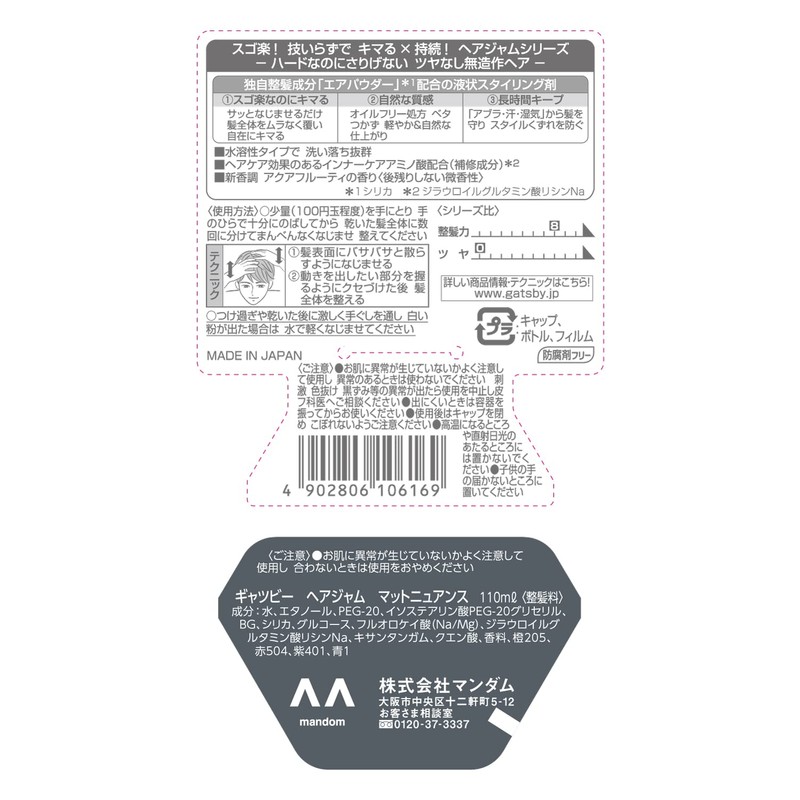 Gatsby Hair Jam Matte Nuance 4.3 fl oz (110 ml)