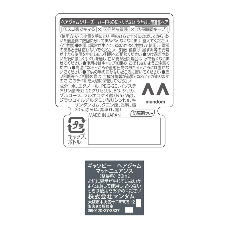 Gatsby Hair Jam Matte Nuance <Mobile> 30ml