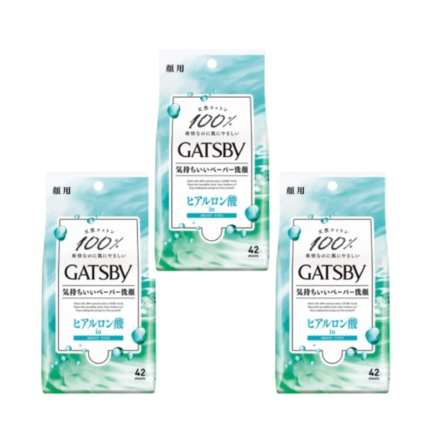 GATSBY Large Face & Body Wipes, Moist Type with Hyaluronic Acid, 42 sheet x3 pk