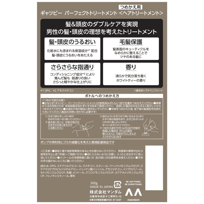 GATSBY Perfect Treatment Refill, Scalp Care, Moisturizing, Men's Conditioner