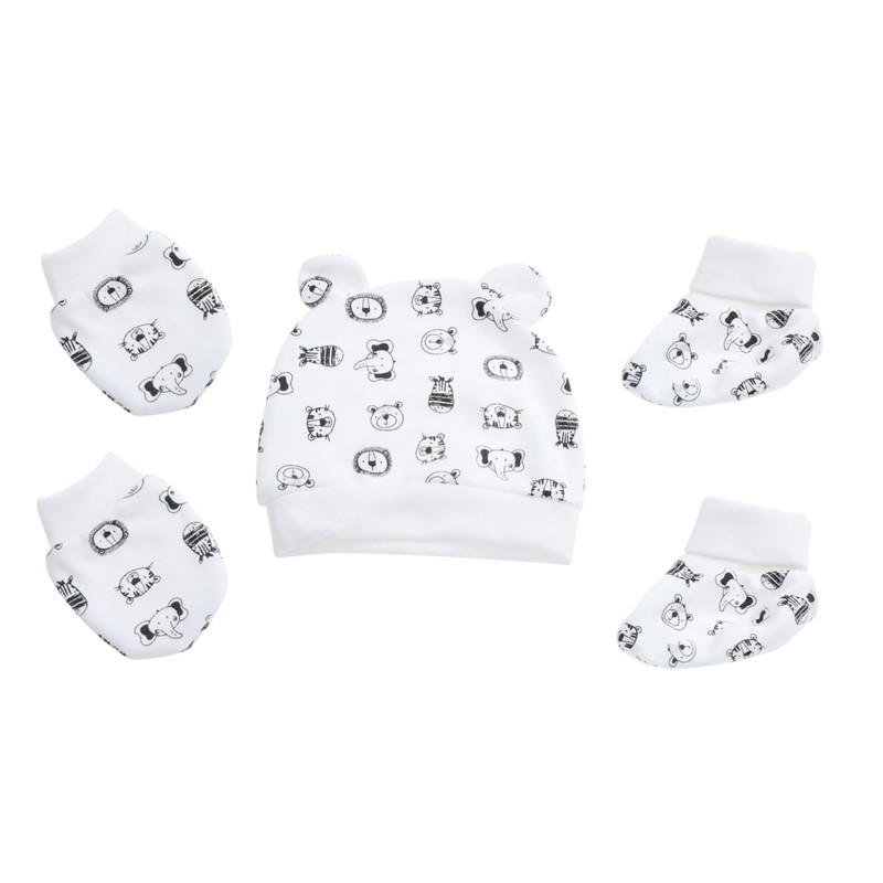 Gatuida 1Set Newborn Cotton Hat and Foot Cover with Scratch Gloves Soft Durable Skin Friendly Cotton for Cold Weather and Protection From Scratches