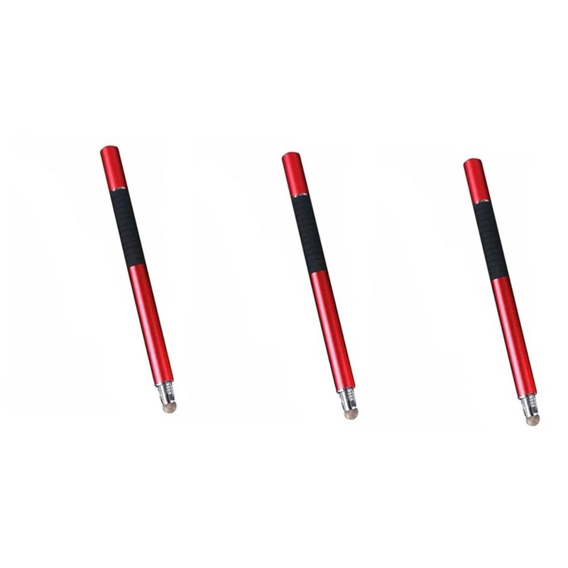 3 x Universal 2 in 1 Disc and Fiber Tip Capacitive Stylus Touch Screen Pen for All Touch Screen Devices Tablets & Cell Phones (Red)