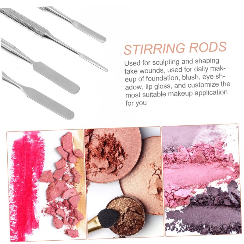 - This set has 4 makeup mixing rods, which can meet your different needs stainless spatula.