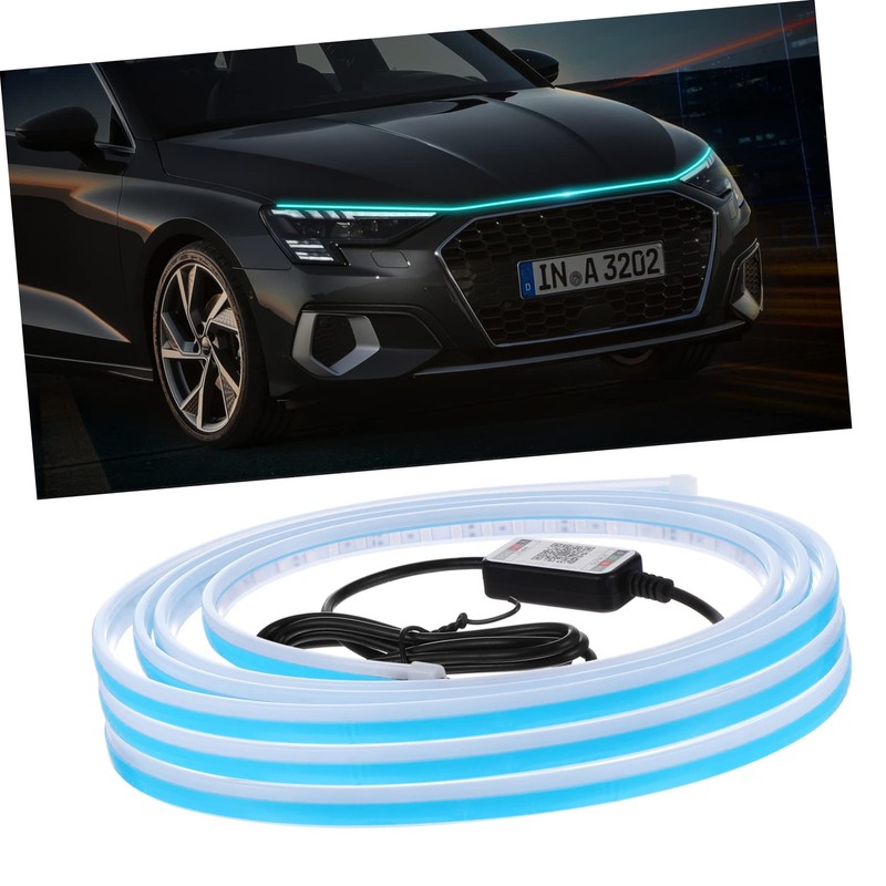 - Hood light strip: ✦✦ LED strip lights for car hood ✦✦ ---- this flexible car hood light strip is built with lamp beads, super brightness, made of silicone, non-heating elastic material. it can be bent at your will and has a lifespan.