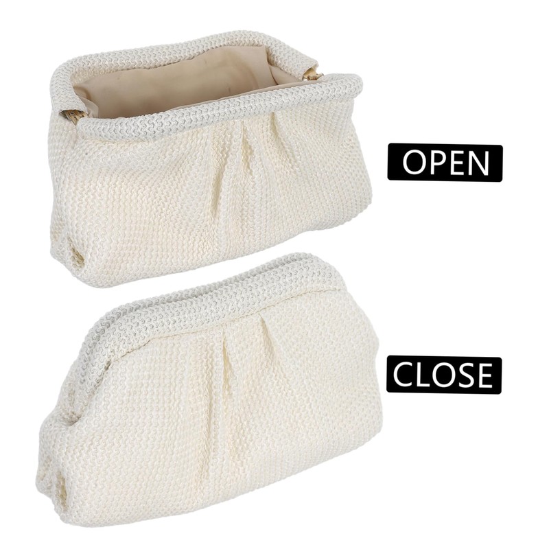 Gatuida Handwoven Straw Clutch Purse Lightweight Beach Bag for Women Cloud Dumpling Design Summer Travel Makeup Pouch Versatile Handbag for Casual and Formal Use