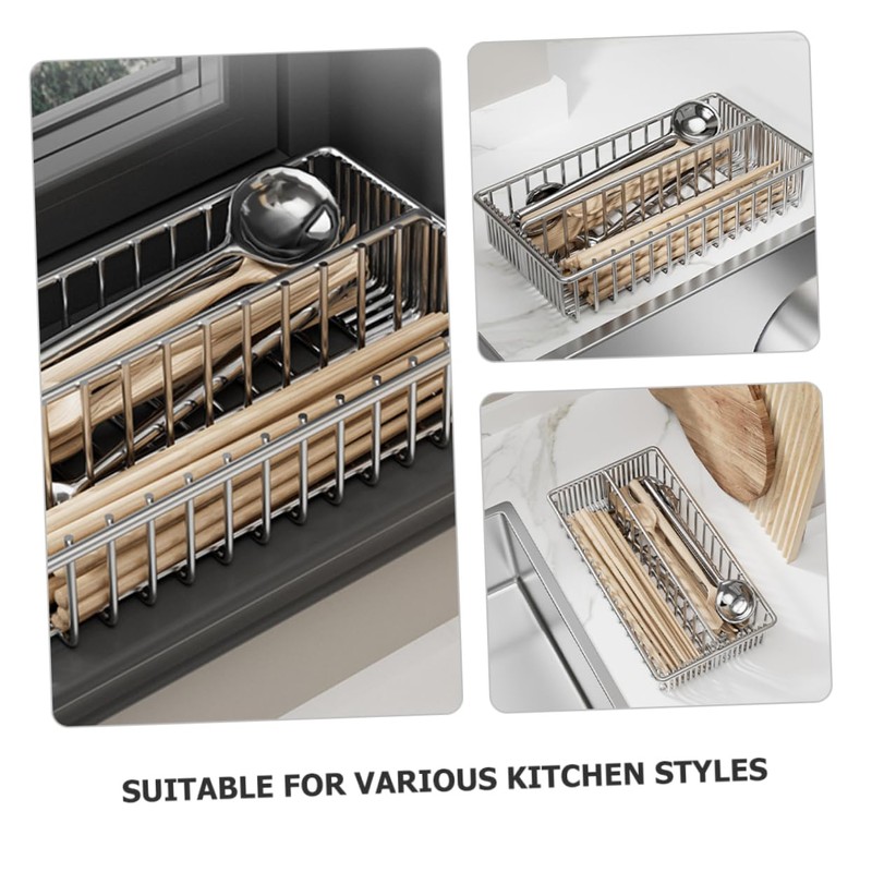 Gatuida Kitchen Accessory Utensil Holder Chopstick and Fork Drainer Stainless Steel Mesh Kitchenware Basket