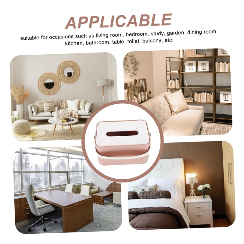 Facial Tissue Dispenser It is and ABS material, to use.napkin holder Detachable bamboomaterial lid, easy to open and close to refill and keeping from gettinginto the box.plastic tissue container This is a household tissue box