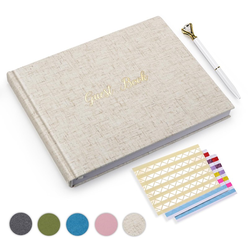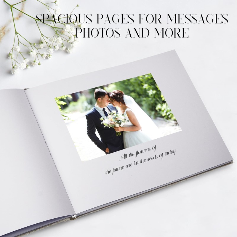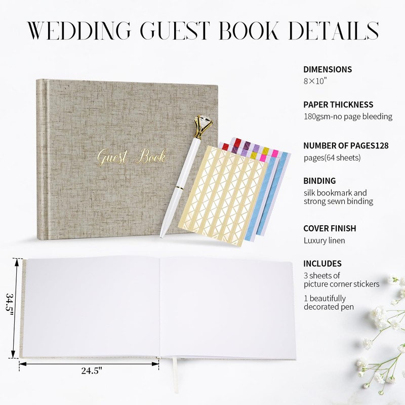 • Hardcover Keepsake with Spacious Pages – This wedding books for guests to sign measures 8x10” with plenty of space, featuring 128 blank and lined pages (64 sheets),More than ordinary, with more preserved beauty·, silk bookmark and strong sewn binding.Completed kit with 3 sheets of picture corner stickers and 1 beautifully decorated pen to secure the special photos of your loved ones. A guest book for party that is built to last and preserve precious memories.