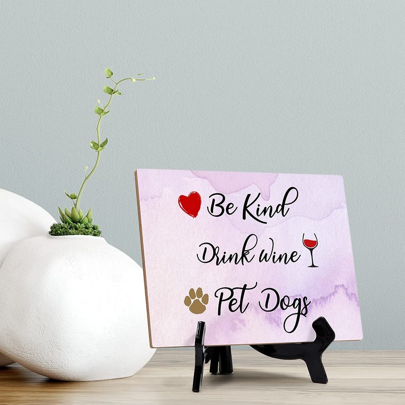 Gaucho Goods Be Kind. Drink Wine. Pet Dogs Table or Counter Sign with Easel Stand, 6" x 8"