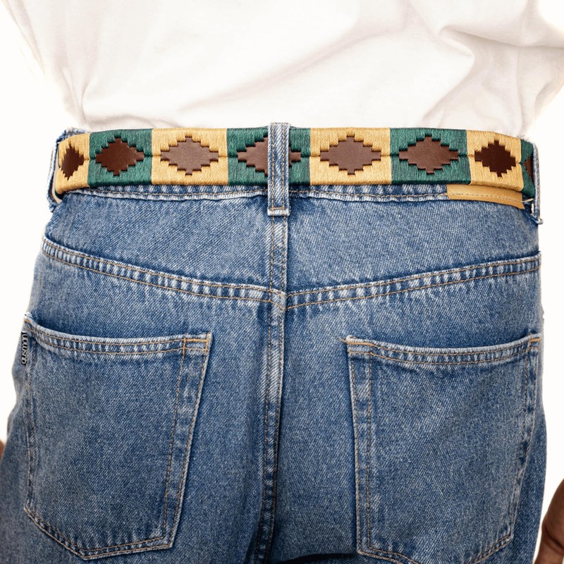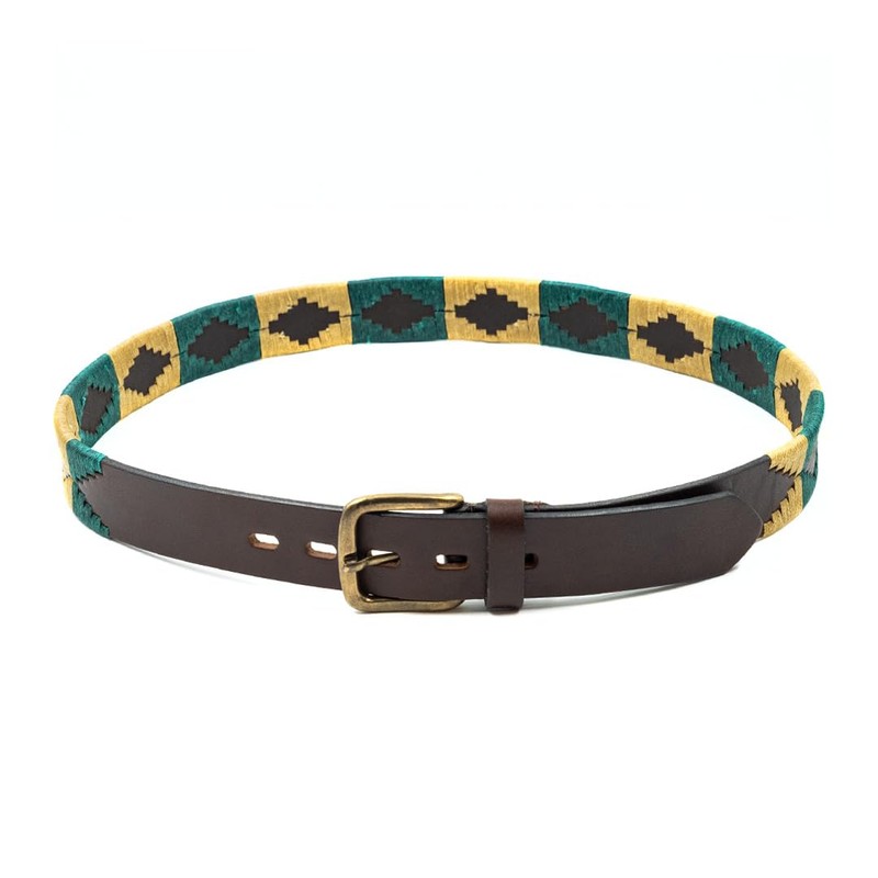 GauchoLife Polo Belt Hand-Stitched leather belt (Green and Tan, 40)