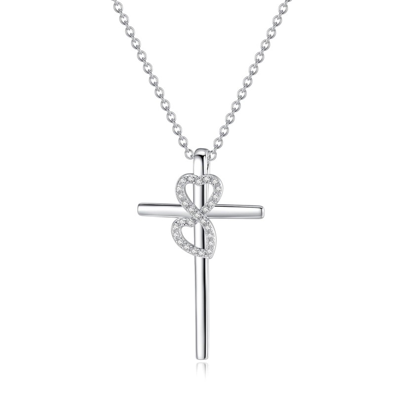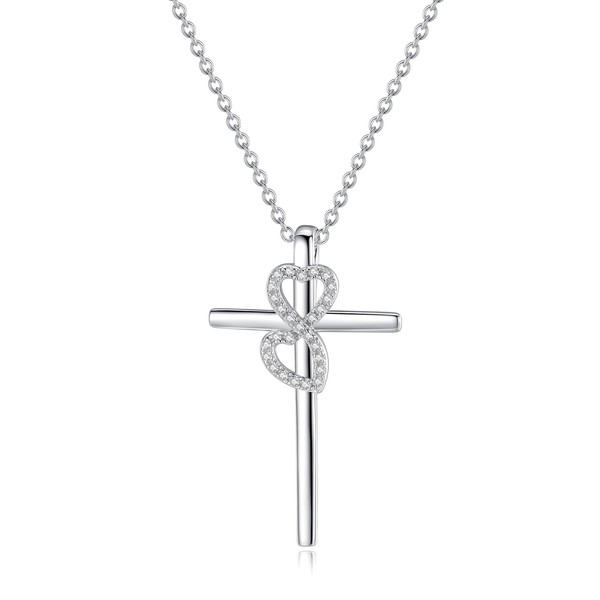 GAUDALGEM Christian Cross Moissanite Pendant Necklace for Women,D color VVS1 18K White Gold Plated S925 Sterling silver, Butterfly Crucifix Pendant, Birthday Christmas Mother's Day Gift,18+2 Inch