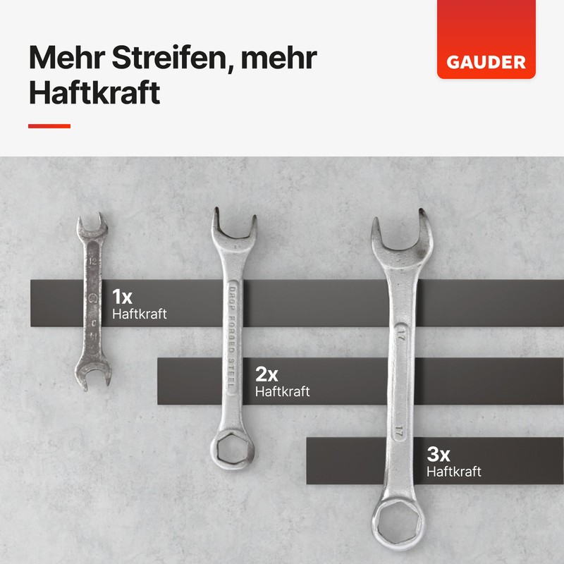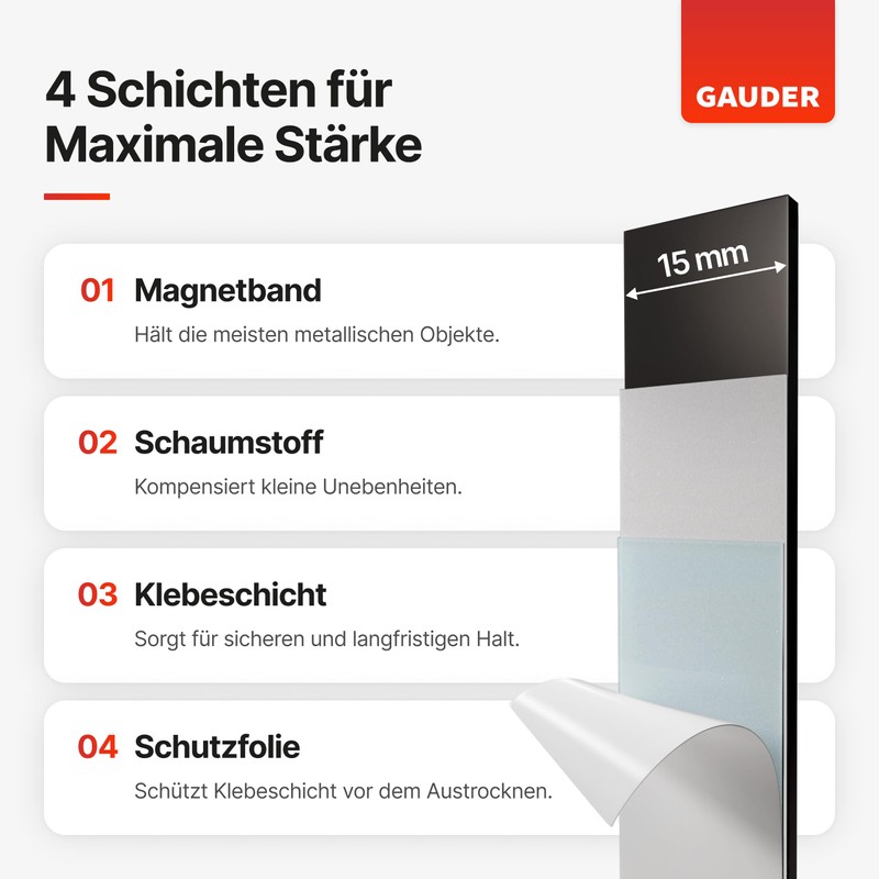 - GAUDER brand quality: strong magnetic tapes from GAUDER are manufactured to a high quality and adhere reliably to many surfaces.