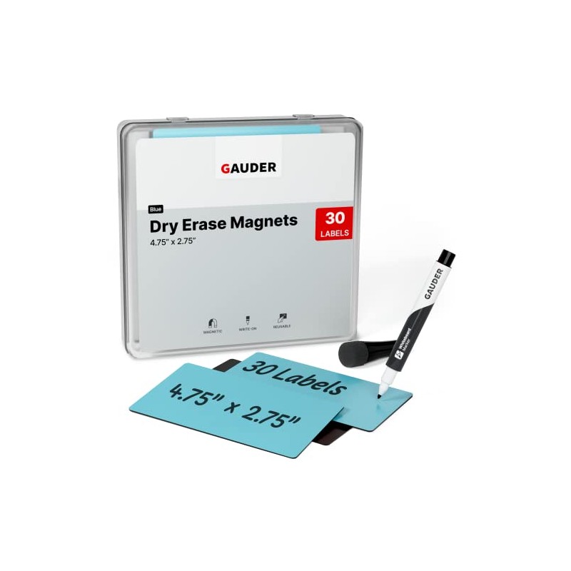 - REUSABLE AND SUSTAINABLE: GAUDER magnetic labels can be written on with the included whiteboard marker and reused over and over again.