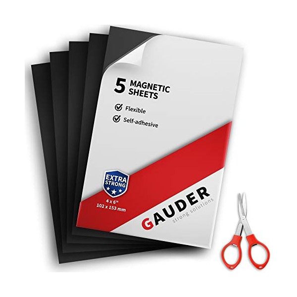 GAUDER Magnetic Sheets with Adhesive Backing (4"x6") | Peel and Stick Magnet Sheets | Flexible Magnetic Paper