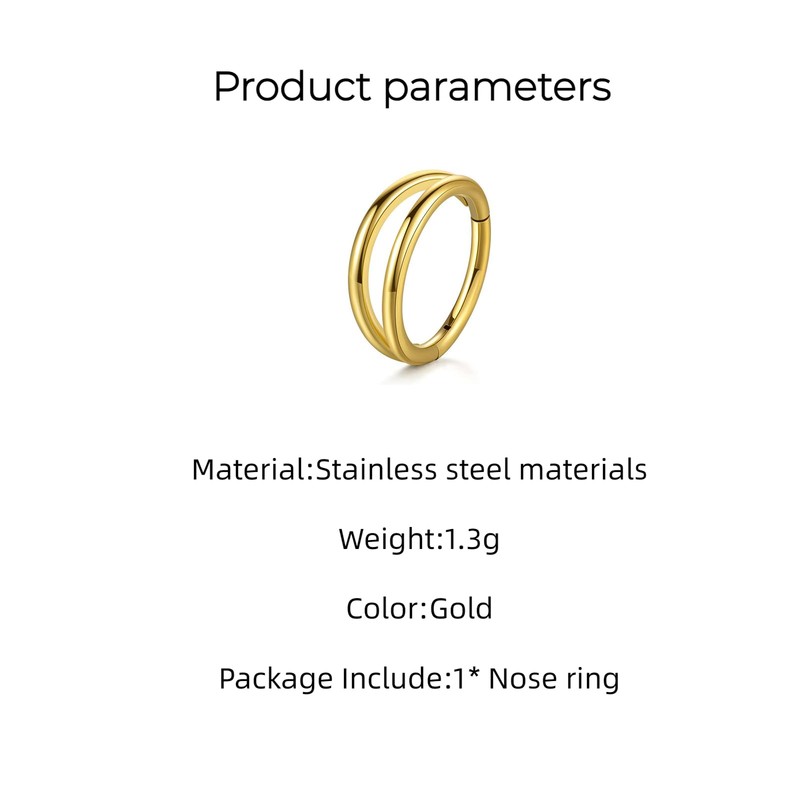GAUEIOUR Double Row Separate Nose Ring,Stainless Steel Double-layer Hinge Perforated Nose Ring Pierced Nose Ring Earrings Conch Perforated Cartilage Ring(Gold)