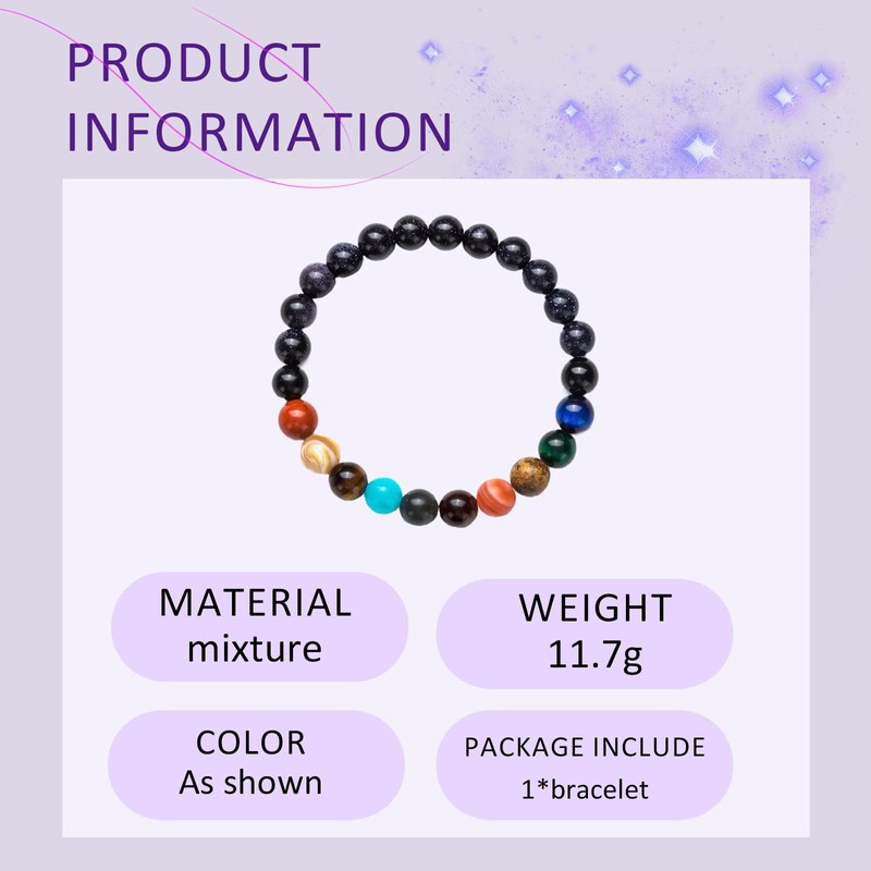 - 【Gift】Wearing a bracelet is like exploring the universe, encouraging the acceptance of challenges and brave advancement, constantly pursuing one's dreams and goals. Giving eight-planet bead bracelet as a gift to others can convey deep emotions and blessings. It represents care, love, and blessings for the other person, hoping that can have a beautiful life and an infinite future.