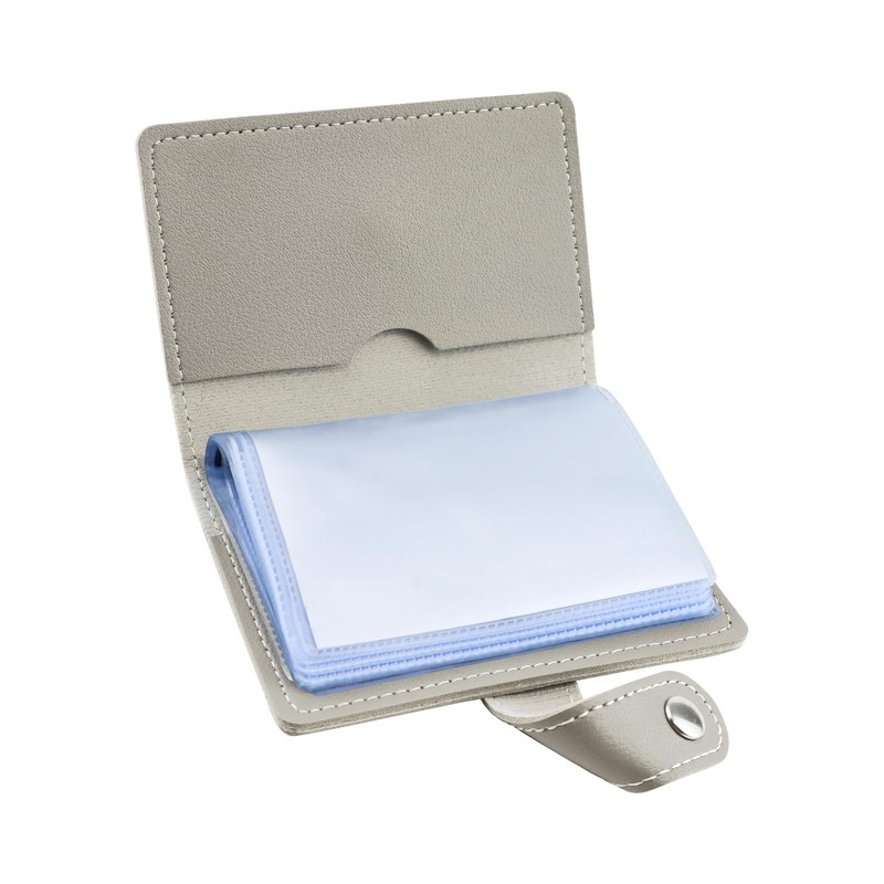 GAUENEEN Leather Business Card Holder, 26 Card Slots, RFID Blocking Secure Professional Card Organizer with Snap Closure, Grey, 4.13 x 3.27 x 0.73 inches, Classic