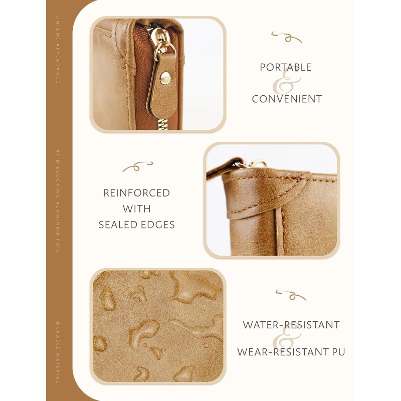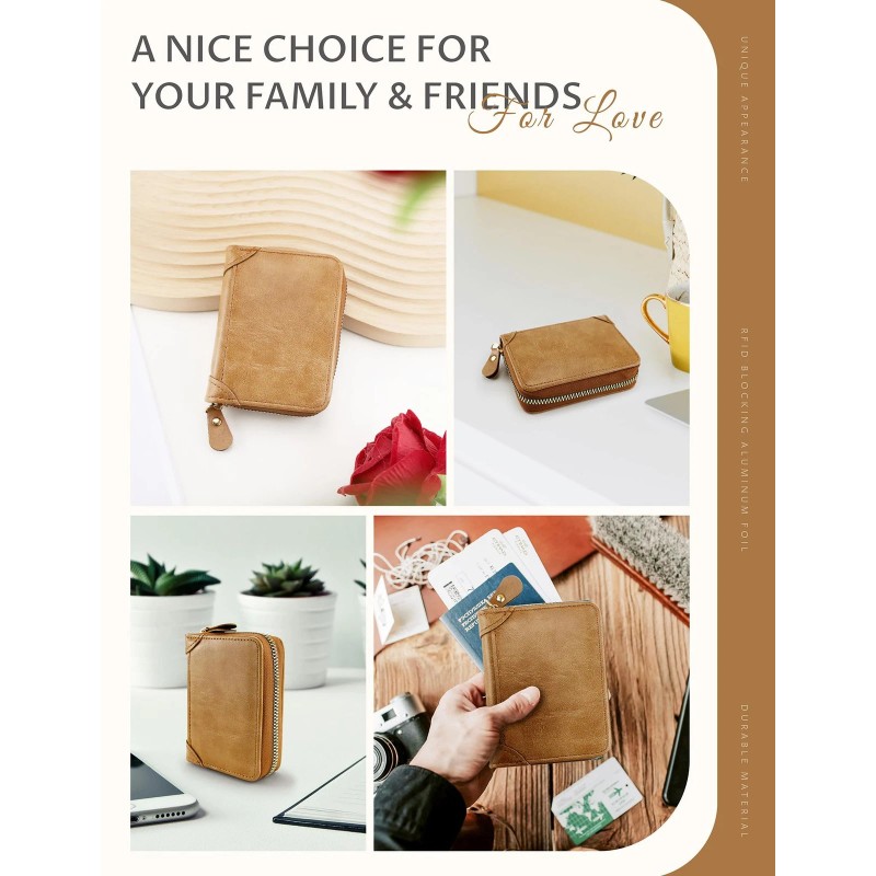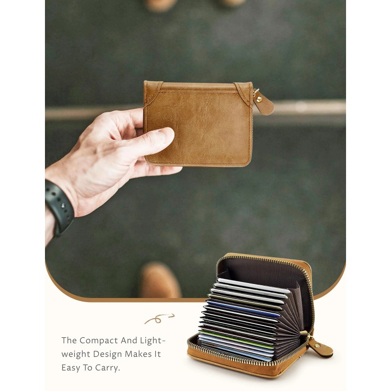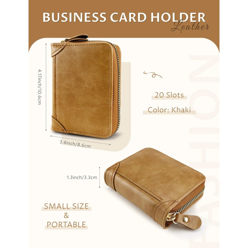 GAUENEEN Leather Business Card Holder, RFID Blocking 20 Slots Zipper Credit C...