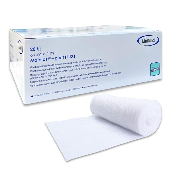 Gauze Bandages 6 cm x 4 m – Pack of 20 Elastic Bandage Fixation Bandage – Latex-Free Bandage Material – Elastic Bandage with 80% Elasticity