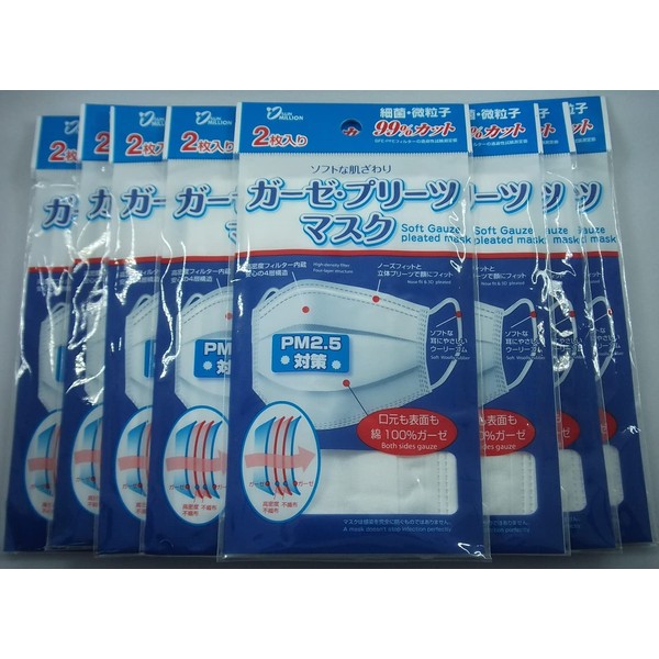 Gauze Pleated Mask, Regular Size, Set of 2 x 8 Pieces (Total of 16)