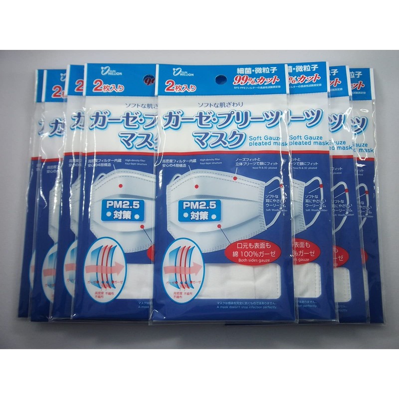 • The pleating process creates a neat space in your mouth. Gauze (cotton) moisturizes and is gentle on the throat and skin. [Filter Performance] Compatible with BFE (bacterial filtration efficiency), PFE (particulate filtration efficiency), PM2.5 (micro-particulate substances) [99% cut] Washable and repeated use (about 3 times)