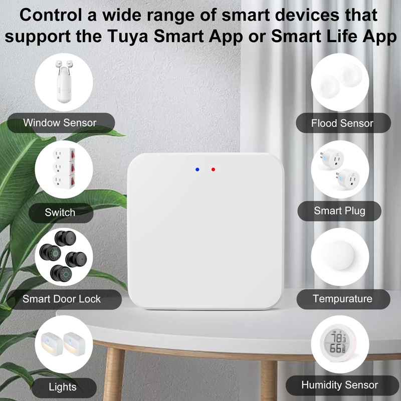 - 【Central Hub for Smart Home Connectivity】Gavdhe Gateway connects seamlessly with devices that support Tuya Smart or Smart Life apps. As a central hub, the Tuya Wi-Fi Gateway enables unified control via smartphone or voice assistant, while the Smart Lock Wi-Fi Gateway enhances convenience in managing your smart home.