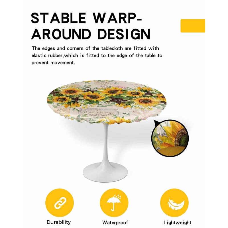 • Sunflower Table Cover Protector: Whether you're covering a coffee table, side table, or outdoor patio table, this tablecloths for round tables provides stylish decoration and practical protection. Hosting a family gathering, outdoor picnic, or garden party This party table cover will enhance the look of your table while protecting it from spills, stains, and scratches, making patio table coverst an essential accessory for any home that demands both style and practicality