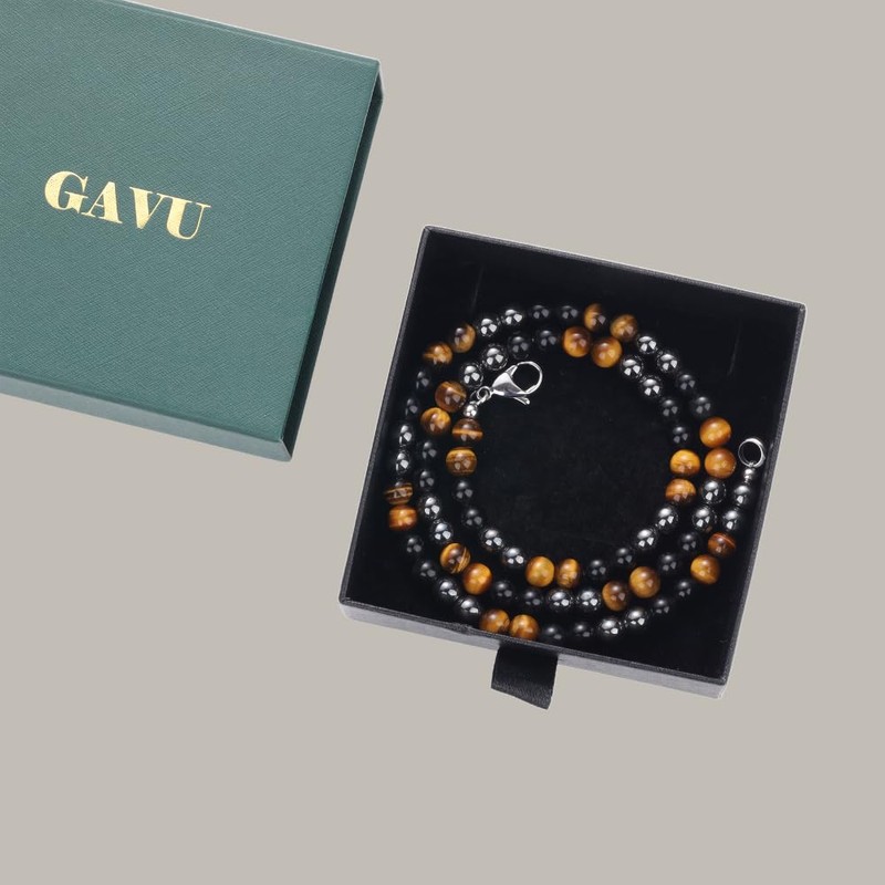 GAVU 8mm Men's Crystal Tiger Eye Hematite Rainbow Obsidian Stone Necklace 60cm