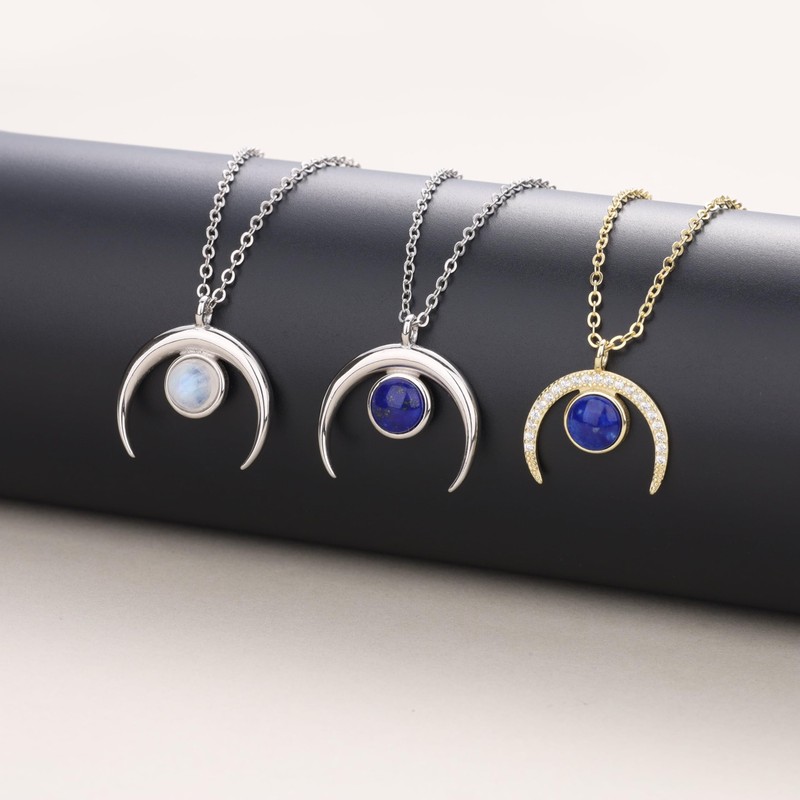 Every GAVU crystal pendant necklace is hand selected by our skilled craftsmen from the exquisite stone crystal materials, imported from all over the world. This women's moon necklace comes in 2 crystal styles: Lapis Lazuli necklace and Moonstone necklace, choose the one that suits your style: Moonstone necklace is known as a stone for new beginnings, success in love and business, and good fortune.