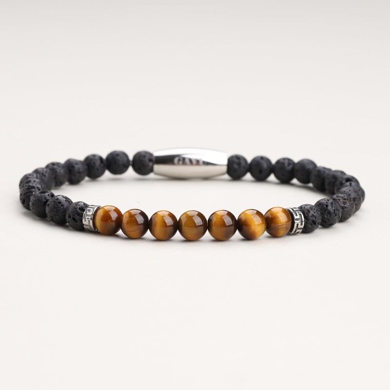 | Material Type: | Lava stone, tiger's eye, stainless steel |
