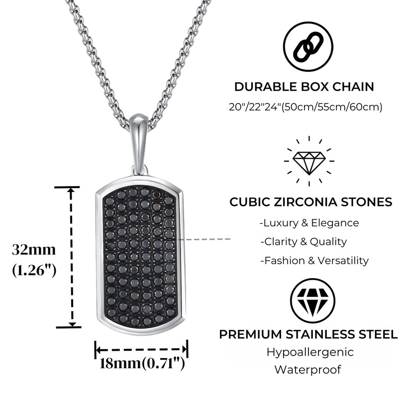 - Material: 32*18*3.4mm black cubic zirconia dog tag pendant necklace