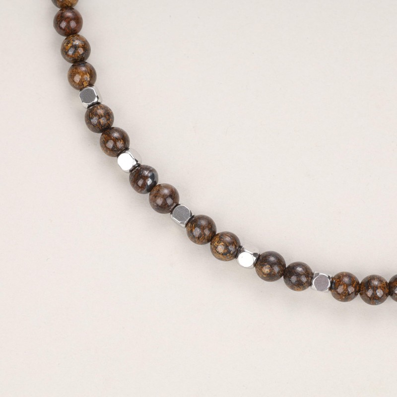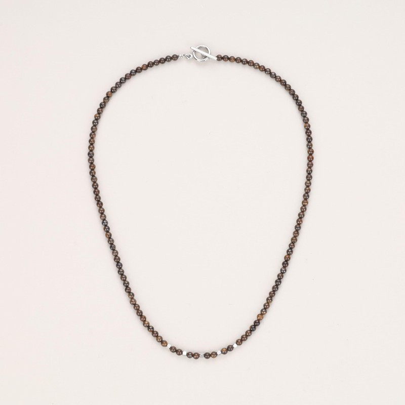Choose from the serene and balancing howlite necklace, the deep and insightful lapis lazuli necklace, the grounding matte onyx necklace, the empowering brown tiger eye necklace, the protective map jasper necklace, or the resilient and grounding bronzite necklace.