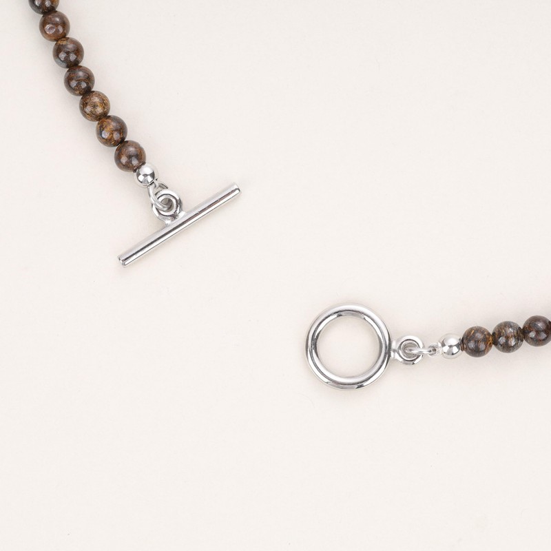 GAVU Toggle Clasp Bronzite Necklace for Men Women, Crystal Beaded Necklace for Men 20"