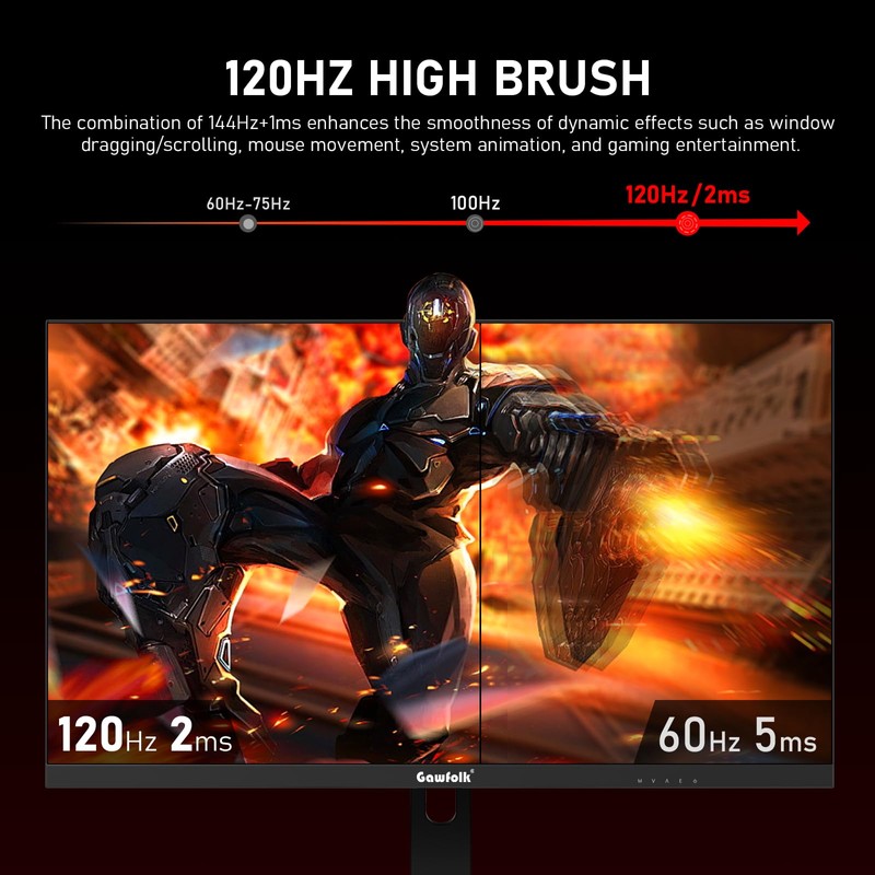 Gawfolk Gaming Monitor 27 inch QHD IPS, PC Screen 120Hz 2K (2560×1440P), Ultra-Thin Zero Frame Computer Display for Home Office Business, DP, HDMI, Wall-Mounted