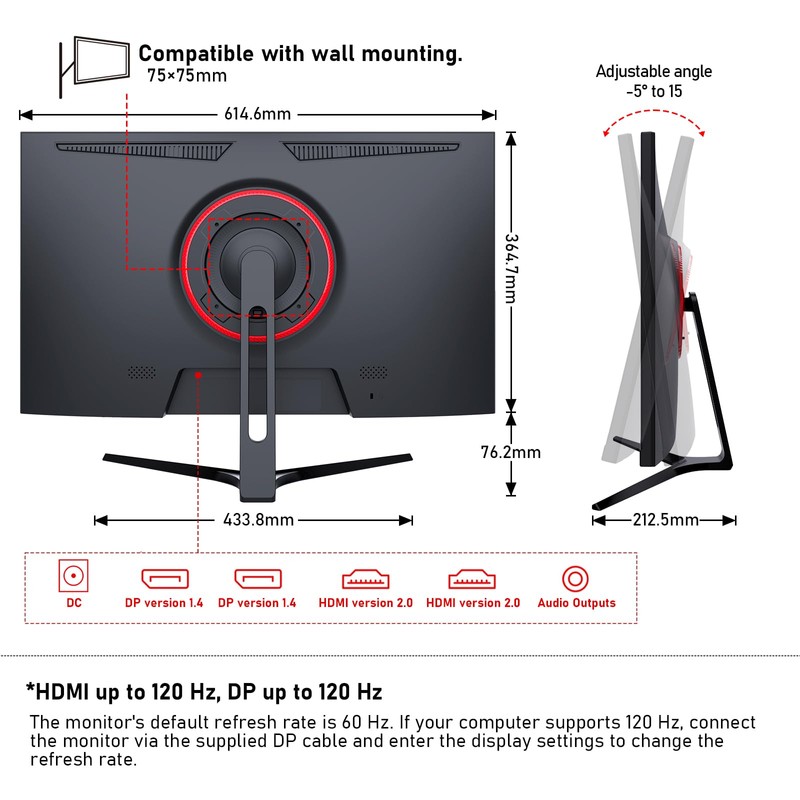 • GAMING PERFORMANCE - Smooth 120Hz refresh rate ensures fluid motion and reduces screen tearing during fast-paced gaming sessions