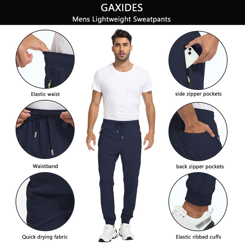 GAXIDES Joggers Pants Sweatpants for Men Lightweight Quick Dry Baggy Relaxed Fit Athletic Workout Track Hiking Elastic Pants with 3 Zipper Pockets Navy S/30