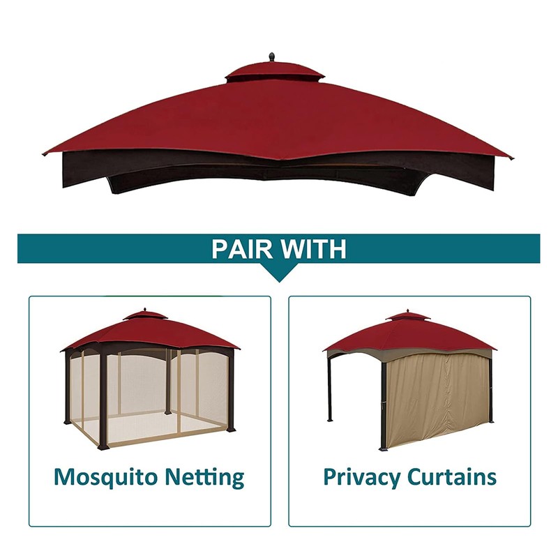 Gazebo Replacement Canopy Top Cover - Wonwon 10X12 Double Tiered Canopy Roof for Lowe's Allen Roth Gazebo Model #GF-12S004BTO/GF-12S004B-1 (Burgundy)