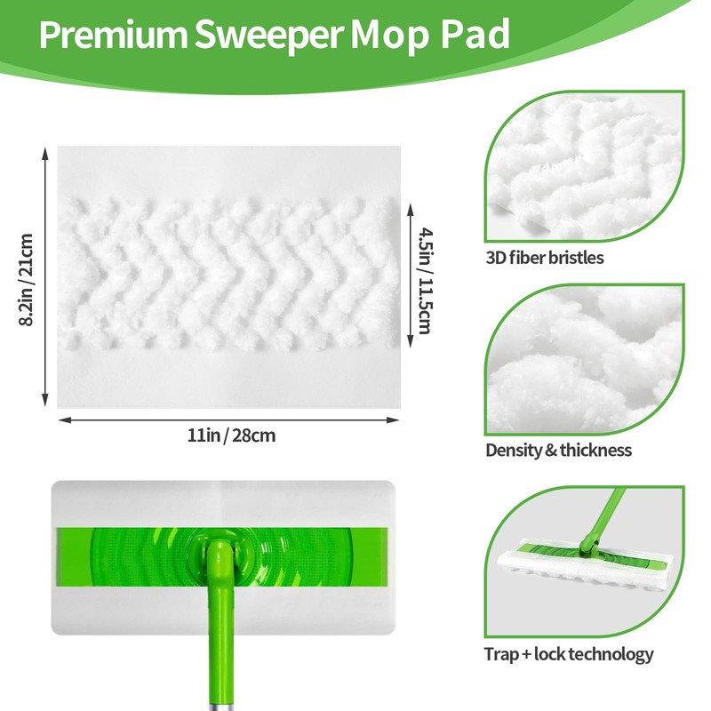 - Powerful stain removal: The inner brush of the disposable dry sweeping pad replacement adopts a S-shaped groove and a vertical locking design between the two layers of bristles. The double locking function ensures that dust and hair are firmly trapped on the mat, improving the cleaning effect and preventing secondary pollution