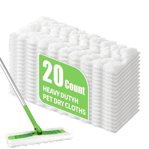 Gazeer 20 Count Pet Heavy Duty Dusters Refills Compatible with Swiffer Sweeper Mop, Dry Sweeping Cloths for Floor Mopping and Cleaning, Unscented