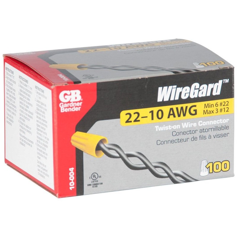 GB Gardner Bender 10-004 WireGard High Performance Twist-on Wire Connectors - Yellow 18-10 AWG - 100 per Box (GB-4)
