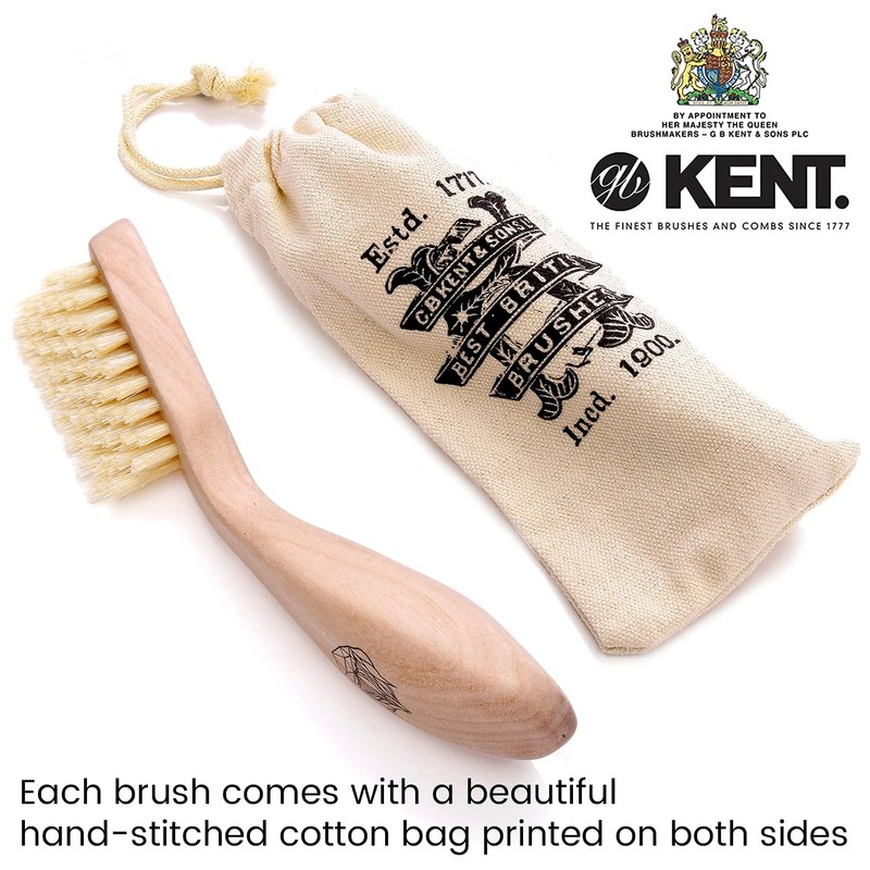 The GB KENT logo on the brush is a reproduction of the 1777 "GB Kent British Beard Brush. This is a reproduction of the Beard Brush that was made from the 1700s. Since that time, it has gained a great reverberation as a brushing brush for your beard. Beechwood handle is ergonomically shaped It has a unique shape that fits in the hand and is easy to brush. 16cm long, perfect size for beard Bristles have boar hair Designed to cut hard, stiff bristles diagonally from a firm angle to a beard for effortless and smooth brushing. Gift box and logo designed by Andre Visage in Iceland. The brush is engraved with the GB Kent logo and is reprinted at the time of 1777. Premium Cotton Original Logo Pouch Convenient size for carrying and storing without worrying about messy brushes. Try the Beard Brush that is the essential British gentleman. Item is in original box