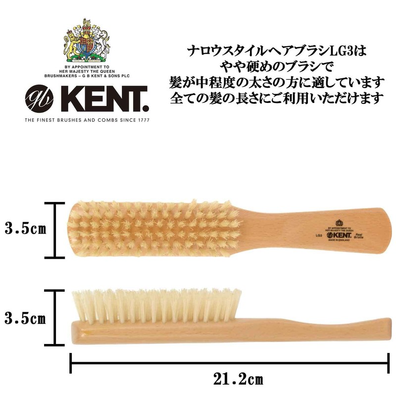 The "Narrow Style Hairbrush LG3" is made from the finest white pork hair and beech wood selected by G.B.KENT craftsmen.
