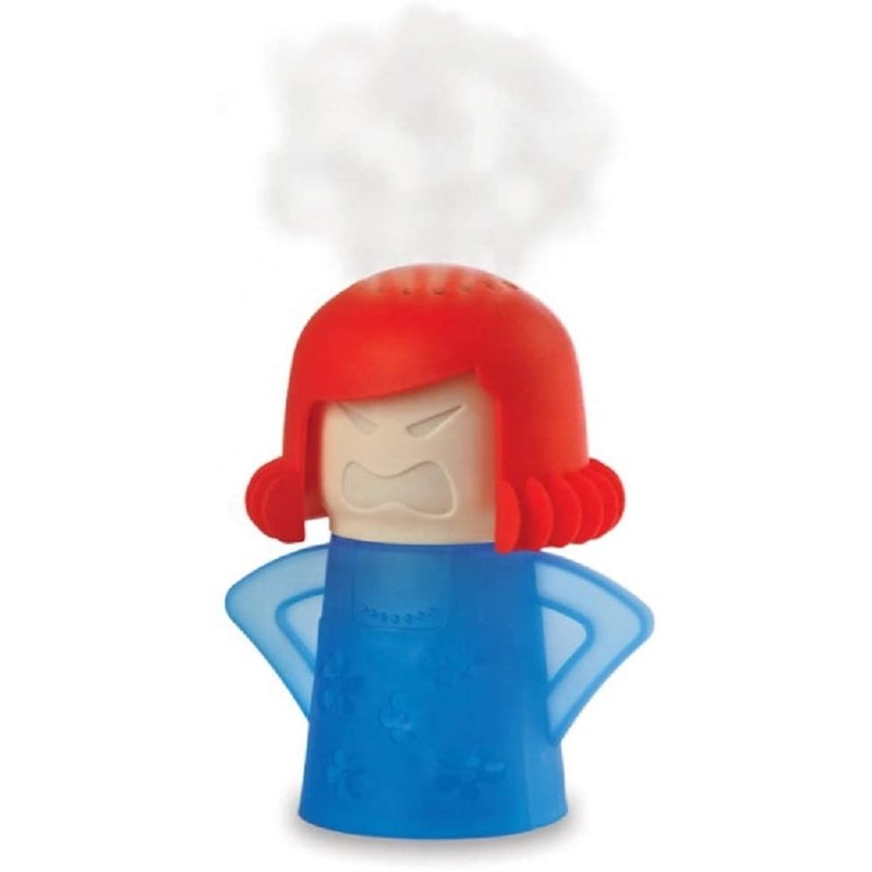 - ♻ STEAM AND WATER! Angry Mama has a smart design of the holes on the head. Steam comes out of the holes under high temperature and softens microwave dirt and stains. All you need is wiping the dirt with sponge