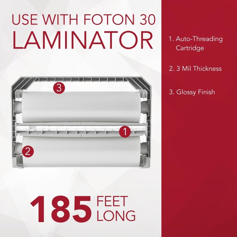 - FILM REFILL – This refill makes replacing your lamination film easy. Simply insert this film refill into your Reloadable Foton 30 Cartridge, place it in the Foton 30 and start laminating!